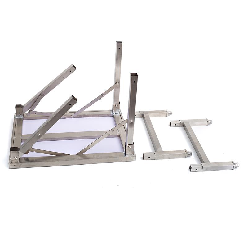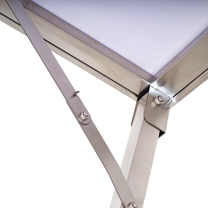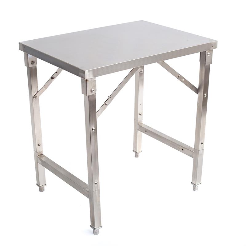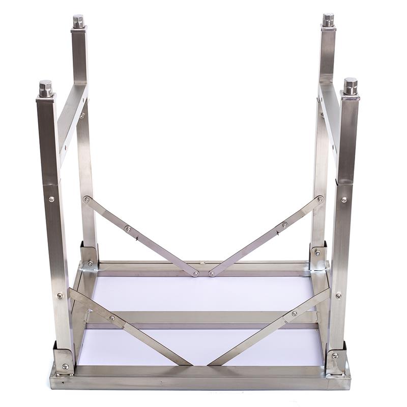 Den Edelstahltisch klappbar erhalten Sie als unterfahrbares Modell ohne Grundboden. Fertig montiert und umgehend einsatzbereit.
