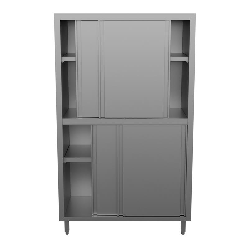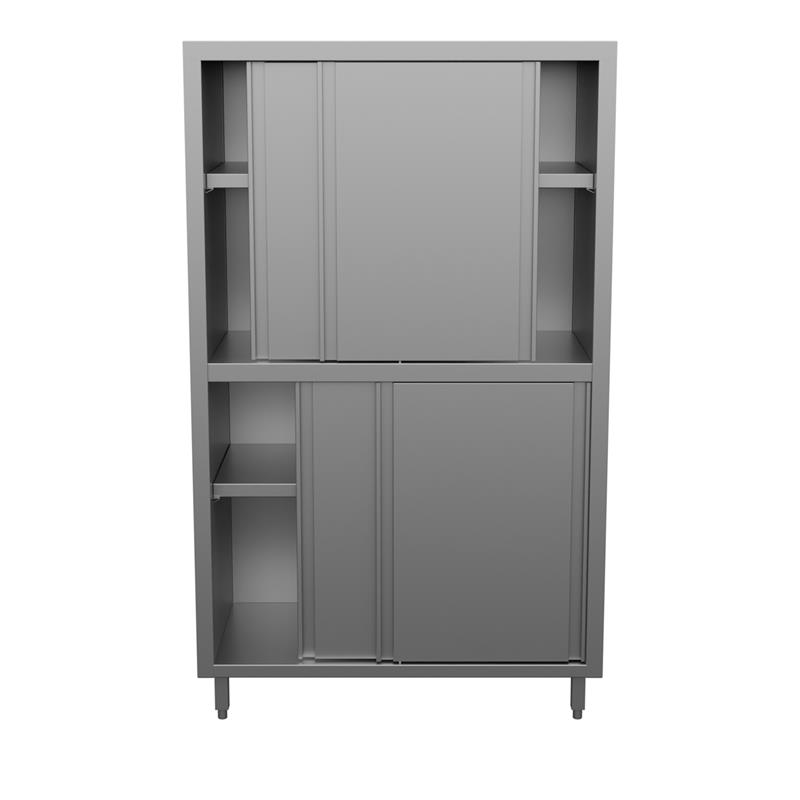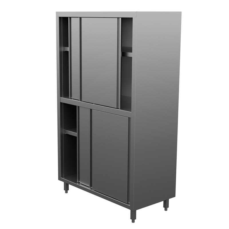 Der Geschirrschrank GS aus hochwertigem Edelstahl 1.4301 ist die perfekte Lösung für die hygienische und platzsparende Aufbewahrung von Geschirr und Küchenutensilien. Ausgestattet mit zwei Schiebetüren und zwei übereinanderliegenden, geschlossenen Schrankräumen, bietet dieser Schrank eine übersichtliche und flexible Struktur. Die höhenverstellbaren Zwischenböden ermöglichen eine individuelle Anpassung des Stauraums. Mit Zinkdruckguss-Füßen und einer Bodenfreiheit von 150 mm sorgt der Schrank für eine einfache Reinigung und eine langlebige Nutzung.