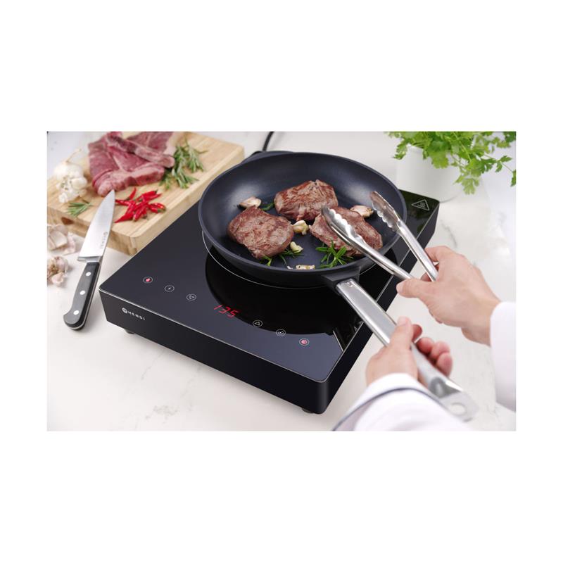 Touch-Bedienung, Leistung oder Temperatur in 10 Stufen einstellbar. Temperaturbereich: 35-240ºC. Geeignet für Pfannen mit einem Bodendurchmesser zwischen 140 und 280 mm. Mit Timerfunktion für 0-180 Minuten. Ausgestattet mit elektronischem Überhitzungsschutz und Luftfilter.