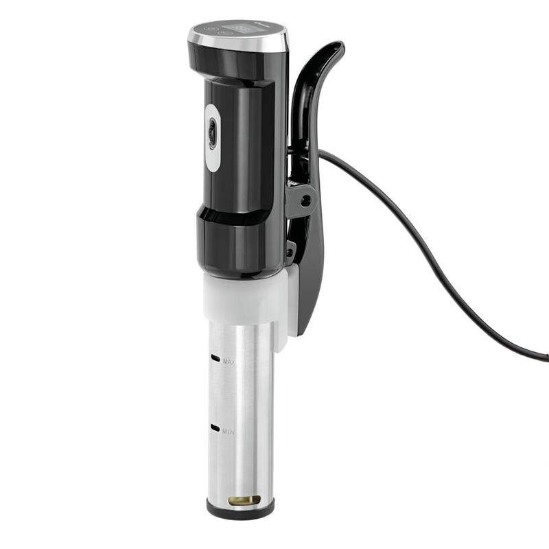 Der kompakte Stick lässt sich einfach an handelsüblichen Töpfen ab einer Mindesttiefe von 190 mm befestigen und ermöglicht damit eine flexible Nutzung ohne spezielle Sous-Vide-Behälter. Das robuste Gehäuse aus Edelstahl und Kunststoff ist hygienisch, langlebig und leicht zu reinigen – ideal für Gastronomie, Catering oder ambitionierte Hobbyköche.