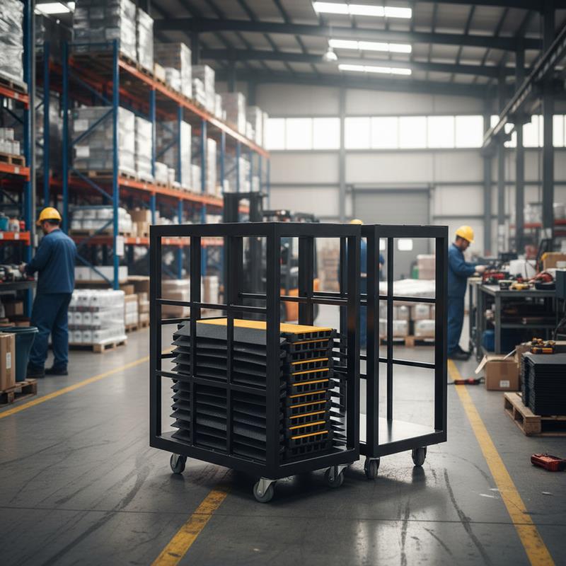 Unsere Stapelpalette aus robustem Stahl ist die ideale Lösung für das Lagern und Transportieren von Kabelbrücken. Mit ihren herausragenden Eigenschaften bietet sie eine zuverlässige und effiziente Lösung für den Einsatz in verschiedenen Umgebungen. Haltbarkeit und Stabilität sind bei der Lagerung und dem Transport von Kabelbrücken von größter Bedeutung. Unsere Stapelpalette gewährleistet eine hervorragende Tragfähigkeit und eine lange Lebensdauer. Sie kann problemlos schwere Lasten tragen und bietet zuverlässige Unterstützung für die Kabelbrücken, um Beschädigungen zu vermeiden. Ein herausragendes Merkmal sind die vier Gummirollen, die eine einfache Handhabung und einen mühelosen Transport ermöglichen. Die Rollen sind aus hochwertigem Gummi gefertigt und bieten eine hervorragende Stoßdämpfung und Geräuschreduzierung. Dadurch können Sie die Kabelbrücken problemlos von einem Ort zum anderen bewegen, selbst auf unebenen Oberflächen oder in engen Räumen. Die Stapelpalette verfügt über eine intelligente Stapelfunktion, die Ihnen ermöglicht, den verfügbaren Raum optimal auszunutzen. Sie können mehrere Kabelbrücken sicher und platzsparend stapeln, um den begrenzten Lagerplatz effizient zu nutzen. Dies ist besonders vorteilhaft für Unternehmen mit begrenztem Raumangebot. Die schwarze Farbe der Stapelpalette verleiht ihr nicht nur ein ansprechendes Aussehen, sondern macht sie auch langlebig und unempfindlich gegenüber Kratzern und Abnutzungsspuren. Dadurch behält sie auch bei häufigem Gebrauch ihr attraktives Erscheinungsbild bei. Egal, ob Sie Kabelbrücken in Lagerhäusern, Veranstaltungsorten oder Baustellen transportieren oder lagern müssen, unsere Palette aus Stahl ist die ideale Wahl!